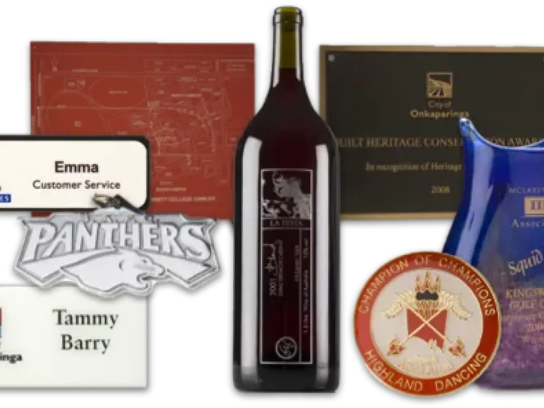 Our engraving service provides the complete, personalised service. We use processes such as; laser, diamond, rotary engraving, sandblasting (etching), sublimination and screen printing to provide the best result for your product.